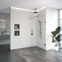 Een luxe inloopdouche van Wiesbaden met een NANO coating. De NANO antikalk coating zorgt ervoor dat er geen ongewenst vuil en kalk achterblijft op het glas. Het water loopt makkelijk van de wand af en de coating zorgt voor een glanzende uitstraling. Dit zal tijd besparen met schoonmaken. Let op! er moeten geen bijtende schoonmaakmiddelen gebruikt worden.