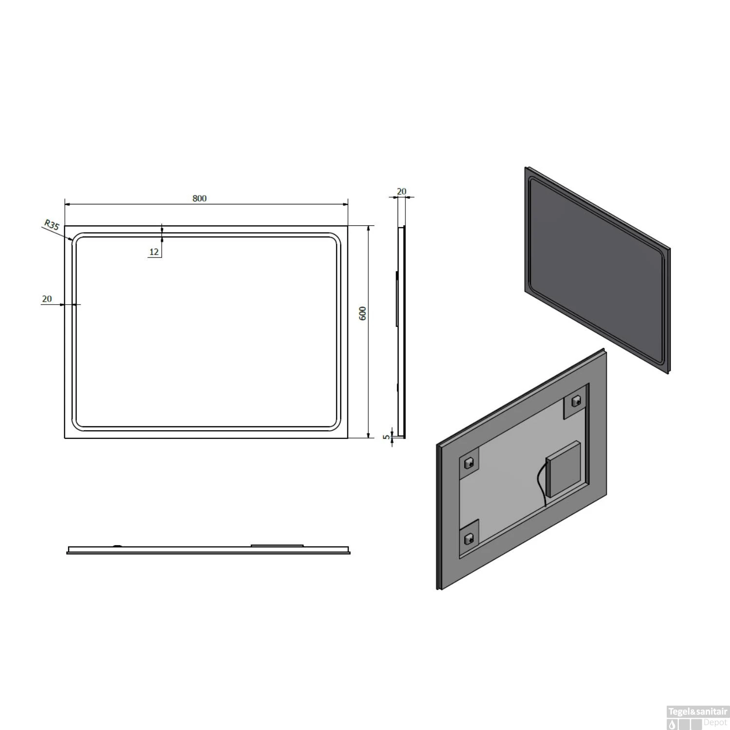 Specificaties Badkamerspiegel 60×80 cm LED-Strips Sapho Gemini II: