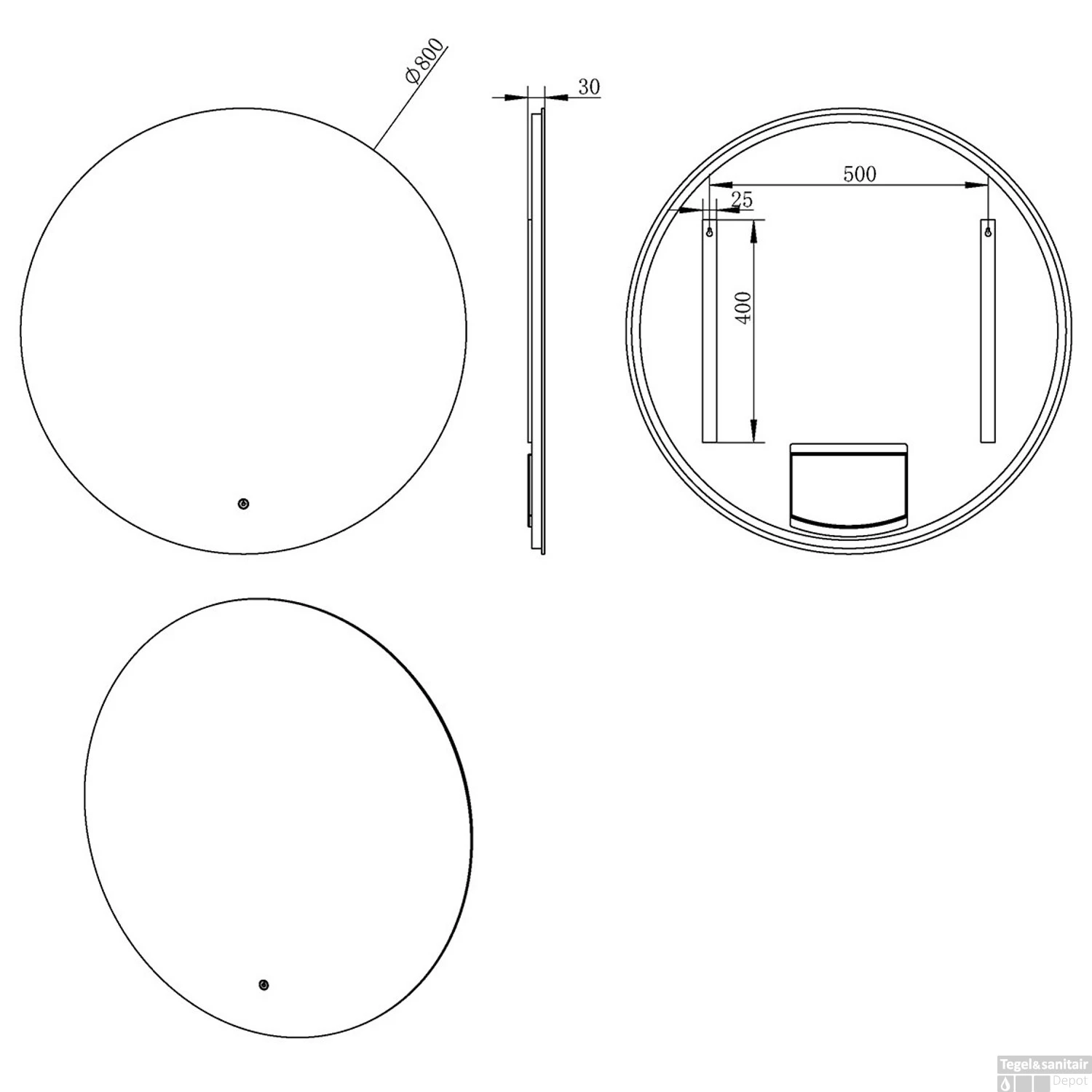 Specificaties Ronde Badkamerspiegel LED BWS Spark (ALLE MATEN):