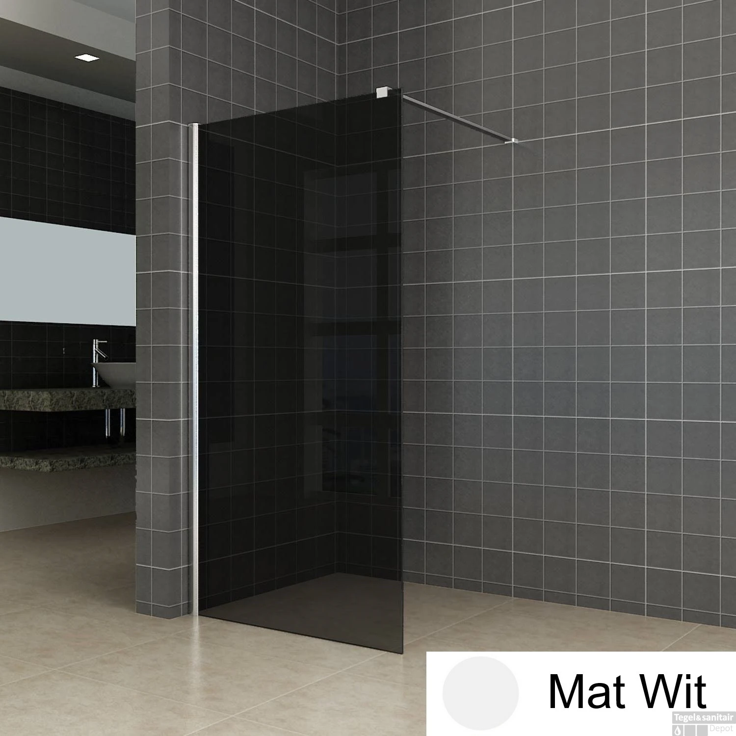 BWS Inloopdouche Pro Line Rookglas 110×200 Nano Coating Mat Wit Profiel en Stabilisatiestang