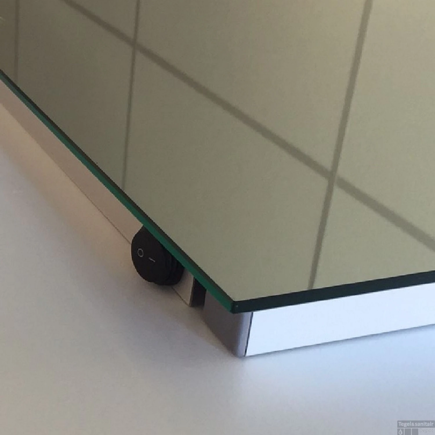 De geïntegreerde LED strip is gekoppeld met een schakelaar aan de zijkant van de spiegel. De verlichting wordt aangesloten op het lichtnet. Hierdoor kunt u de spiegel ook gebruiken als het donker is of als u een donkere badkamer heeft. De LED verlichting zorgt er voor dat dit product energiebesparend is.