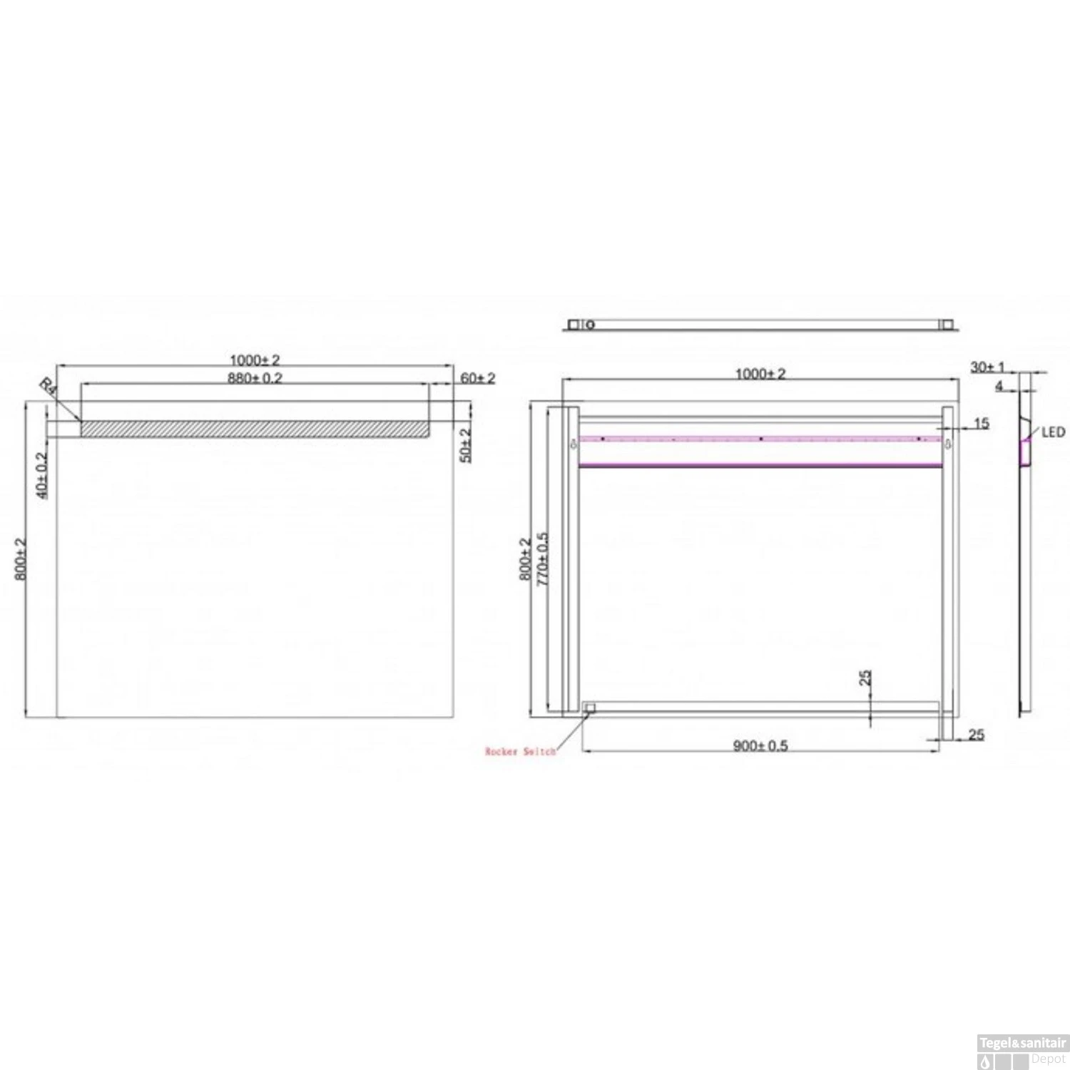 Specificaties BWS LED Spiegel Liga met Lichtschakelaar 100x80x3.1 cm (incl bevestigingsmateriaal)
