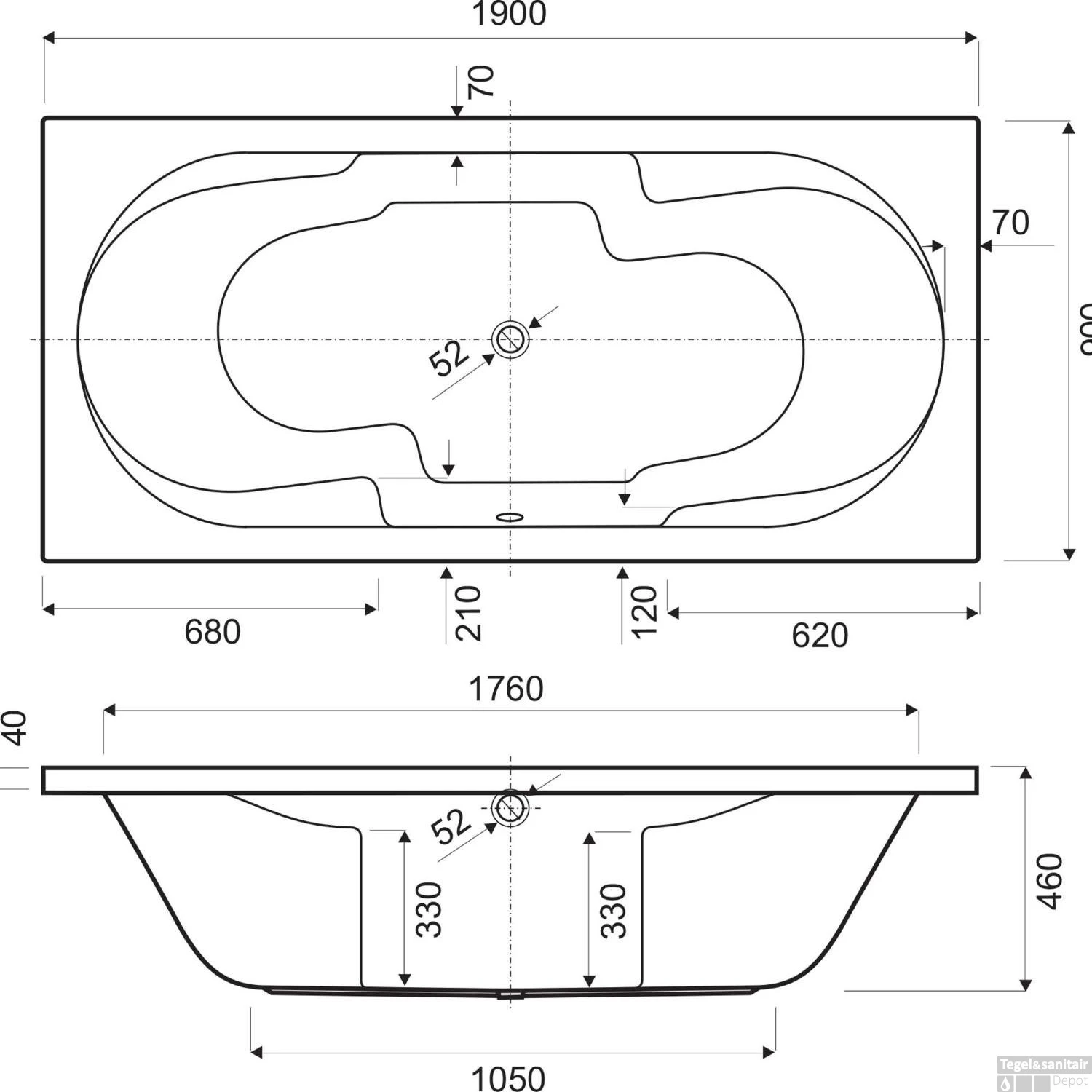 Duo Ligbad Wisa Levanto 190x90x46 cm Wit