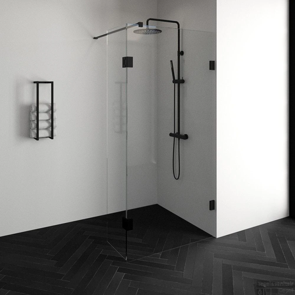Deze complete inloopdouche bestaat uit een inloopwand en een draaibare zijwand met Mat Zwart beslag. Inclusief glasbehandeling en optionele kunststof profielen. De hoogte van de inloopdouche is 200 cm. Hij is 97,7 cm breed en maximaal 200 cm diep. Deze inloopdouche straalt luxe uit door zijn design en kleur.