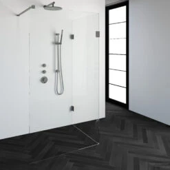 Deze complete inloopdouche bestaat uit twee inloopwanden met RVS beslag. Inclusief glasbehandeling. De hoogte van de inloopdouche is 200 cm. Hij is 108,3 cm breed en 87,7 cm diep. Deze inloopdouche straalt luxe uit door zijn design en kleur.