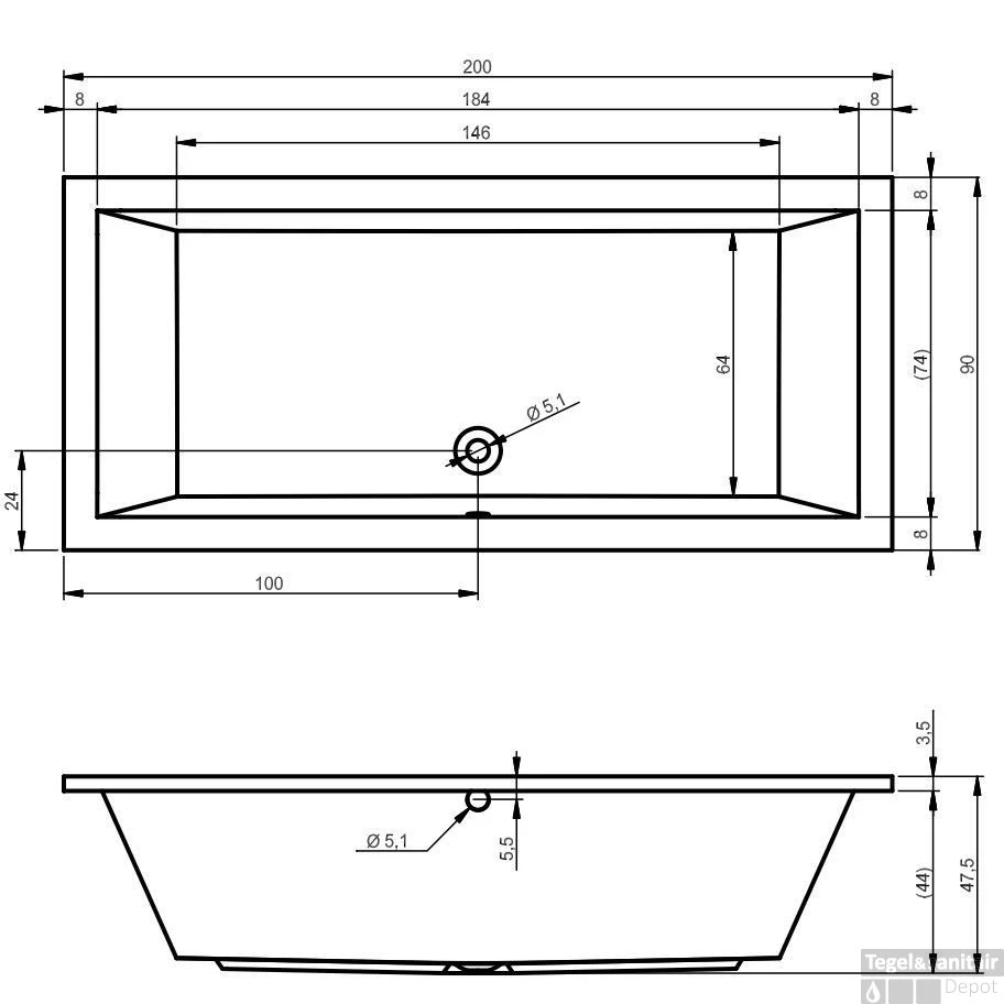 - – Exclusief badpoten en badafvoer