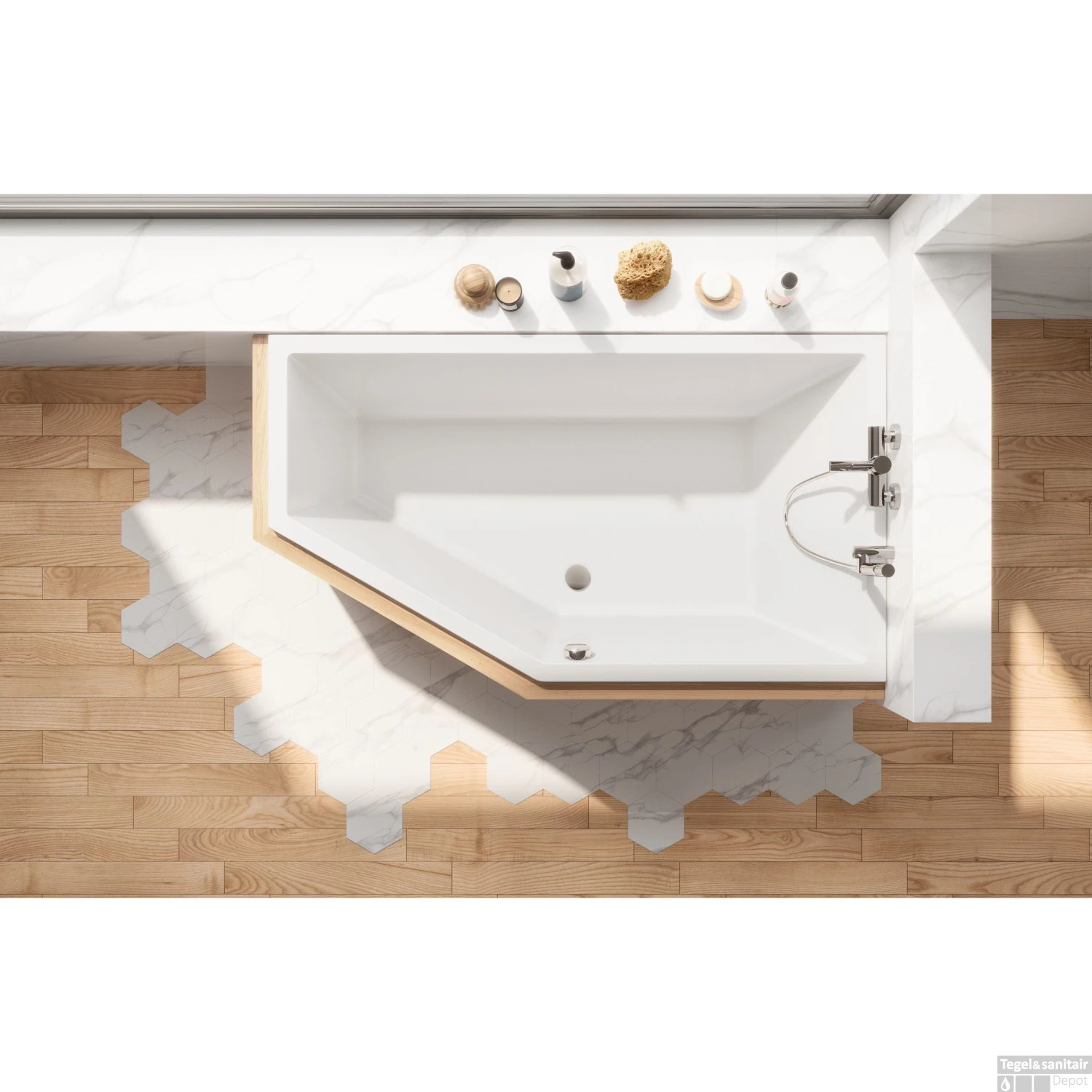 Het bad wordt geleverd exclusief afvoer en poten. Het bad is van acryl in de kleur wit. Het bad heeft een overloop. Dit bad is verkrijgbaar in een linkse en rechtse variant. Deze variant is geschikt voor de rechterhoek.