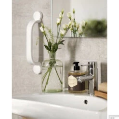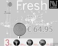 Onderaan zit een wateruitlaat waar de 1/2 doucheslang aansluiting aan bevestigd kan worden. Het water stroomt dan van de houder via de slang naar de handdouche.