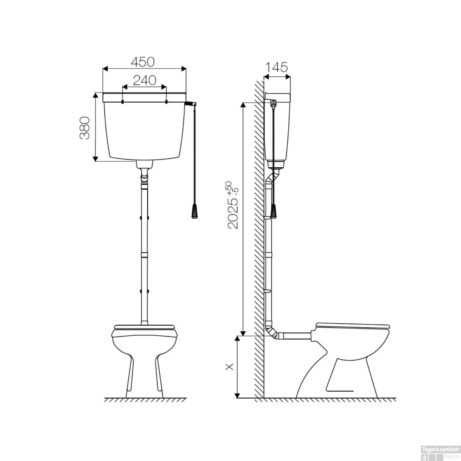 Een mooie stortbak van Go By Van Marcke voorzien van een trekketting. Omdat het reservoir hoog gemonteerd moet worden is de trekketting handig om het reservoir door te trekken. De trekketting hangt aan de rechterkant van het reservoir. U kunt het reservoir heel eenvoudig monteren.