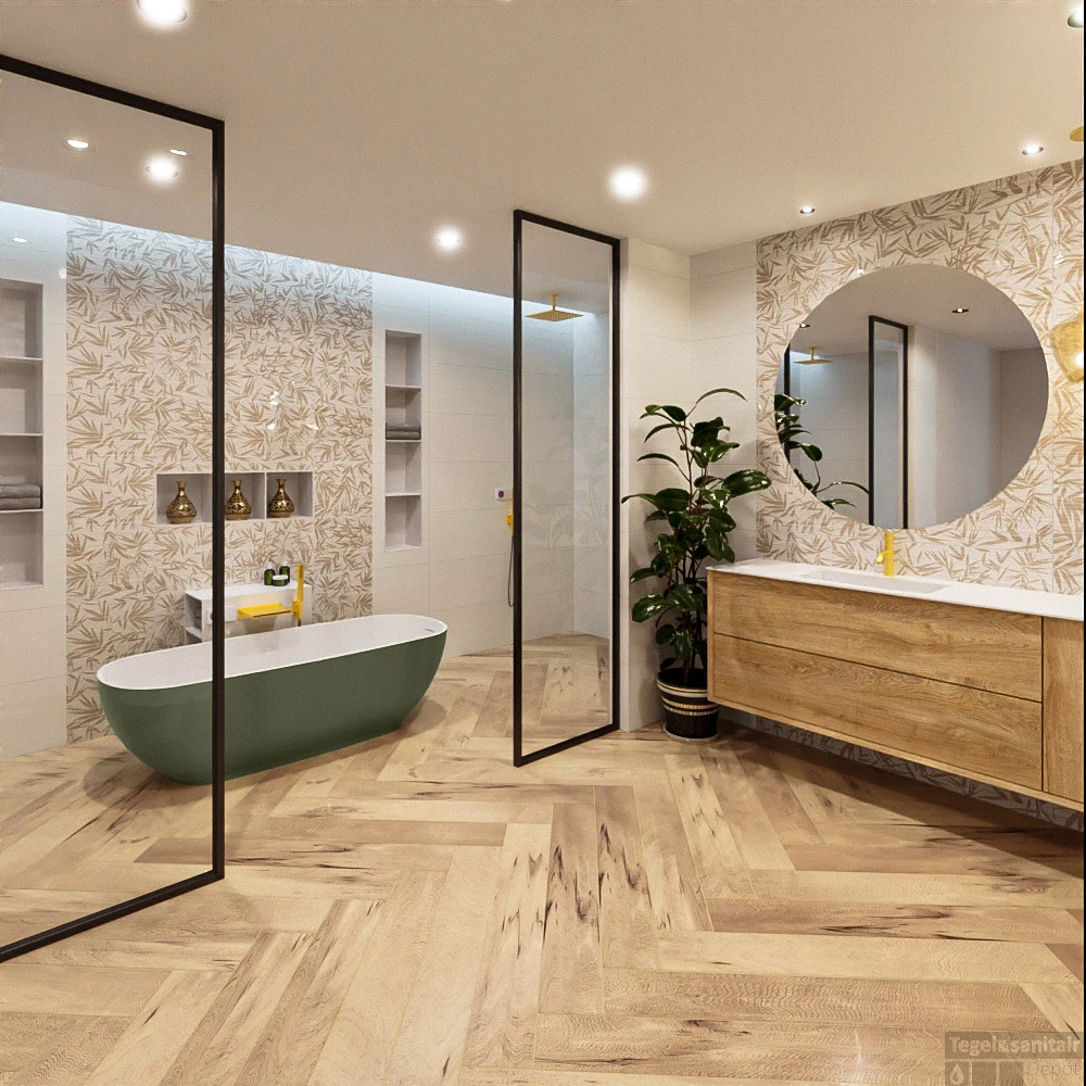 Een royaal bad met een klein vloeroppervlak door het subtiele randje. De ROCK is vrijstaand en half vrijstaand te plaatsen en mooi te combineren met de bad nis. Dit is de ideale oplossing voor uw inbouw kranen en altijd handig om wat extra ruimte voor shampoo en bad producten te hebben rond het bad. Bij deze badkamer opstelling is gekozen voor het badmeubel COFF. Een massief eiken meubel in 2 kleuren verkrijgbaar. Het meubel heeft 2 laden en een deurtje en is te combineren met alle wastafel modellen.