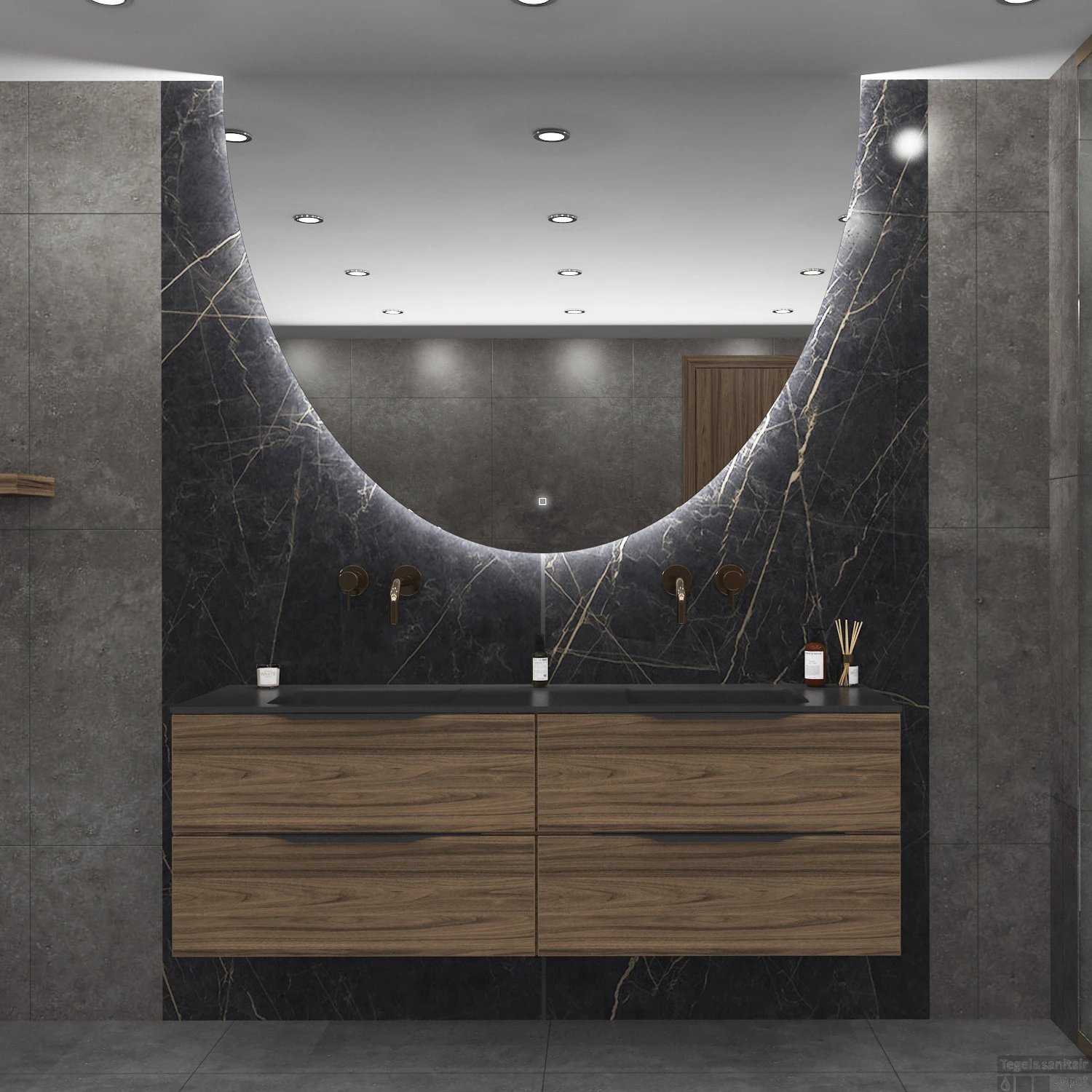 Deze spiegel van het merk Gliss Design is er een zoals nog nooit vertoond is. De spiegel heeft namelijk een rechte en een ronde kant die perfect op uw fantastische badmeubel aansluit. Als u deze spiegel plaatst bedekt de spiegel een groot deel van de muur waardoor het een echte eyecatcher wordt in uw badkamer.