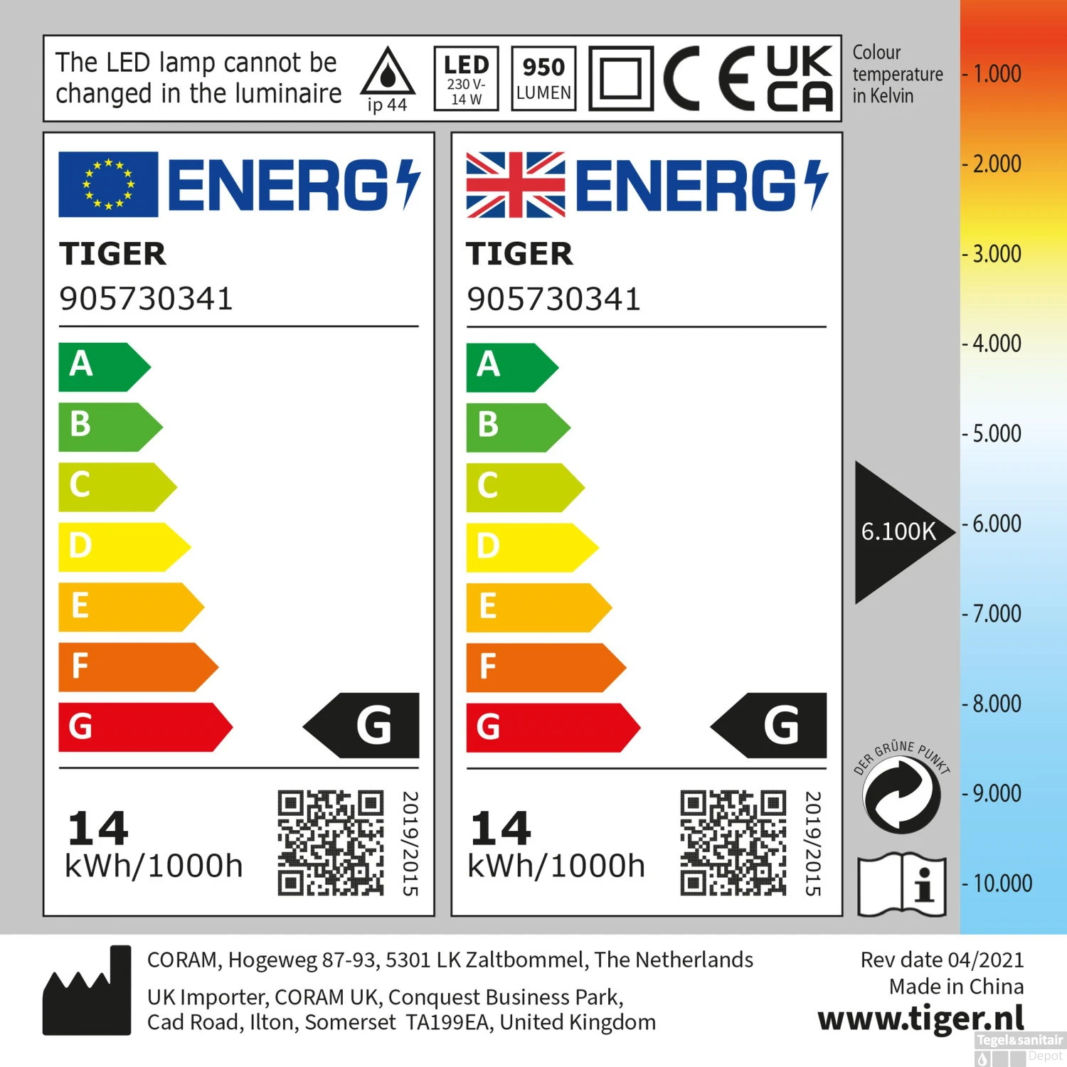 De Tiger LED-lamp Helena is een brede strak vormgegeven moderne designlamp. Door de breedte van de lamp is deze uitermate geschikt om boven de wastafelspiegel te hangen. De lamp kan op 2 manieren gemonteerd worden; zowel op het meubel als op de spiegel. De lamp is uitgevoerd in de kleur chroom. De lamp is voorzien van 13,8 watt LED verlichting met geïntegreerde transformator. De lichtkleur is 6100K.