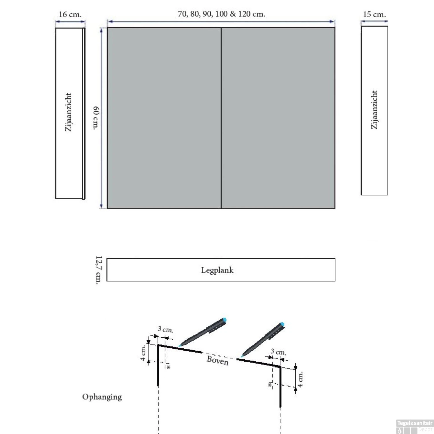 De gehele voorkant van dit product is voorzien van een spiegel. Rond het chroom vindt u een spiegeldeurgreepje en in de kolom- en/of spiegelkast kan een Sanicare Contactdoos/schakelaar geplaatst worden. Bovendien valt deze badkamerspiegel prima te combineren met diverse types Sanicare design verlichting. De badkamerspiegel kent een breedte van 70 cm, een hoogte van 60 cm en een diepte van 15 cm.