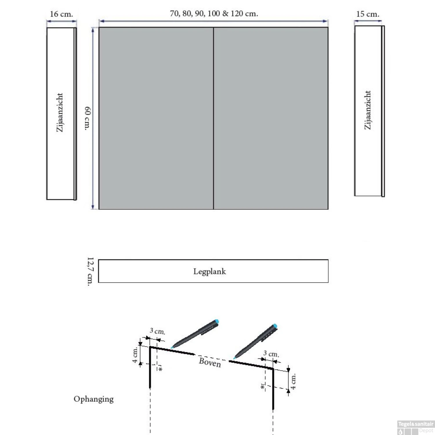 - Diepte: 15 cm