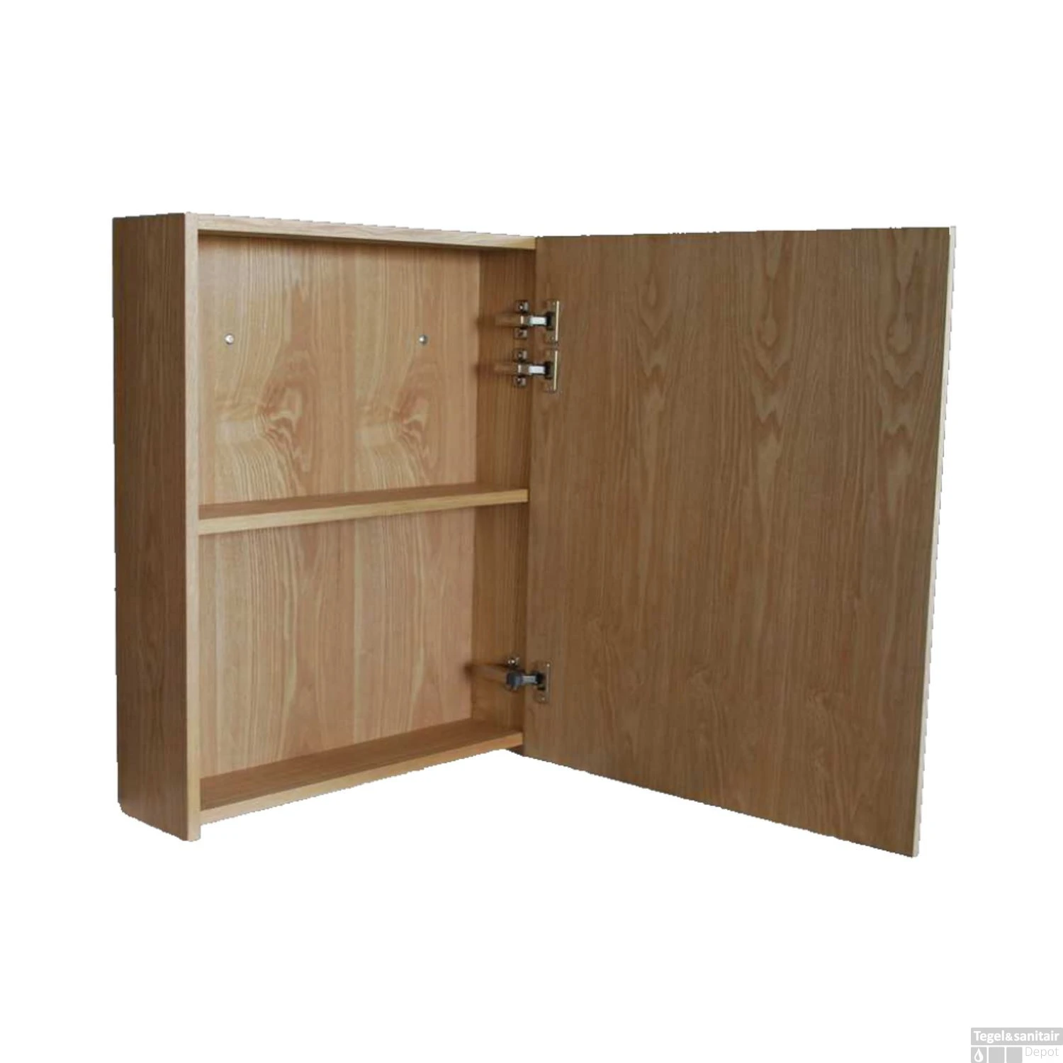 Spiegelkast Sanilux Wood 60x70x16cm Massief eiken Softclose Rechtsdraaiend