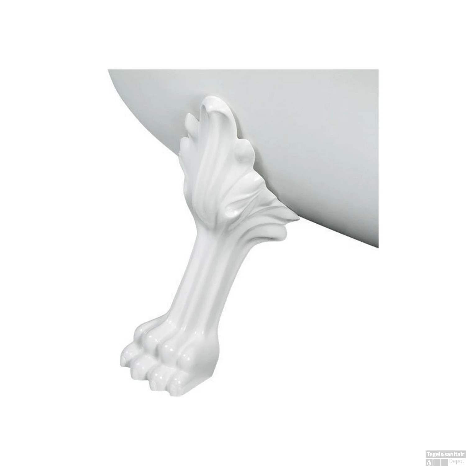 De witte poten maken dit vrijstaande bad echt af. Badpoten hoeft u er dus niet meer bij te bestellen. U heeft nog wel een afvoerplug nodig en een badafvoer.