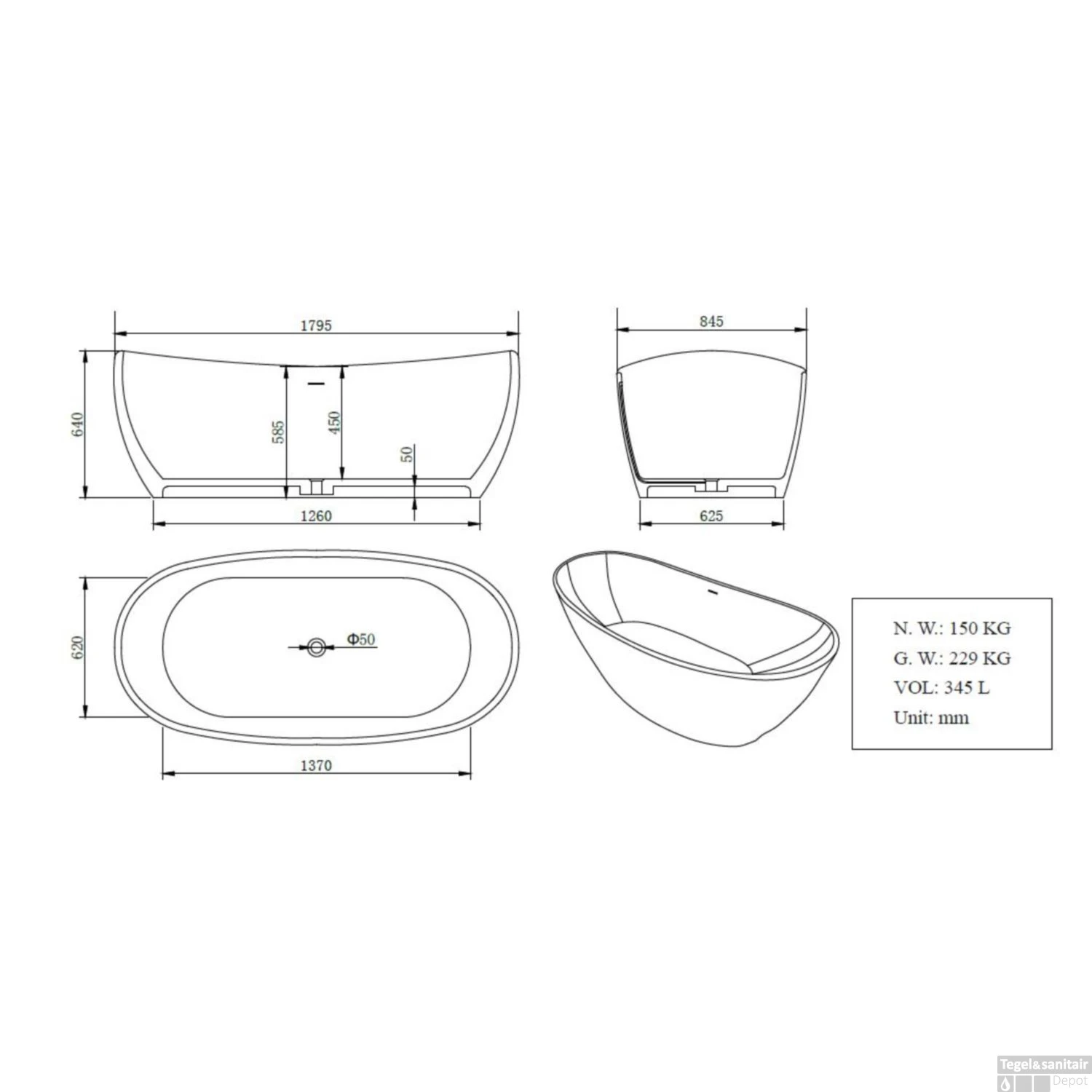 Dit vrijstaande eenpersoons bad is 1795x845x640 mm. Een unieke bad wat een blikvanger zal zijn in uw badkamer! Het bad heeft een erg modern uiterlijk. Door de smalle rand en ronde vormen is het bad geschikt voor in een kleinere ruimtes. Door de ergonomisch gevormde bodem ligt dit bad toch heerlijk.