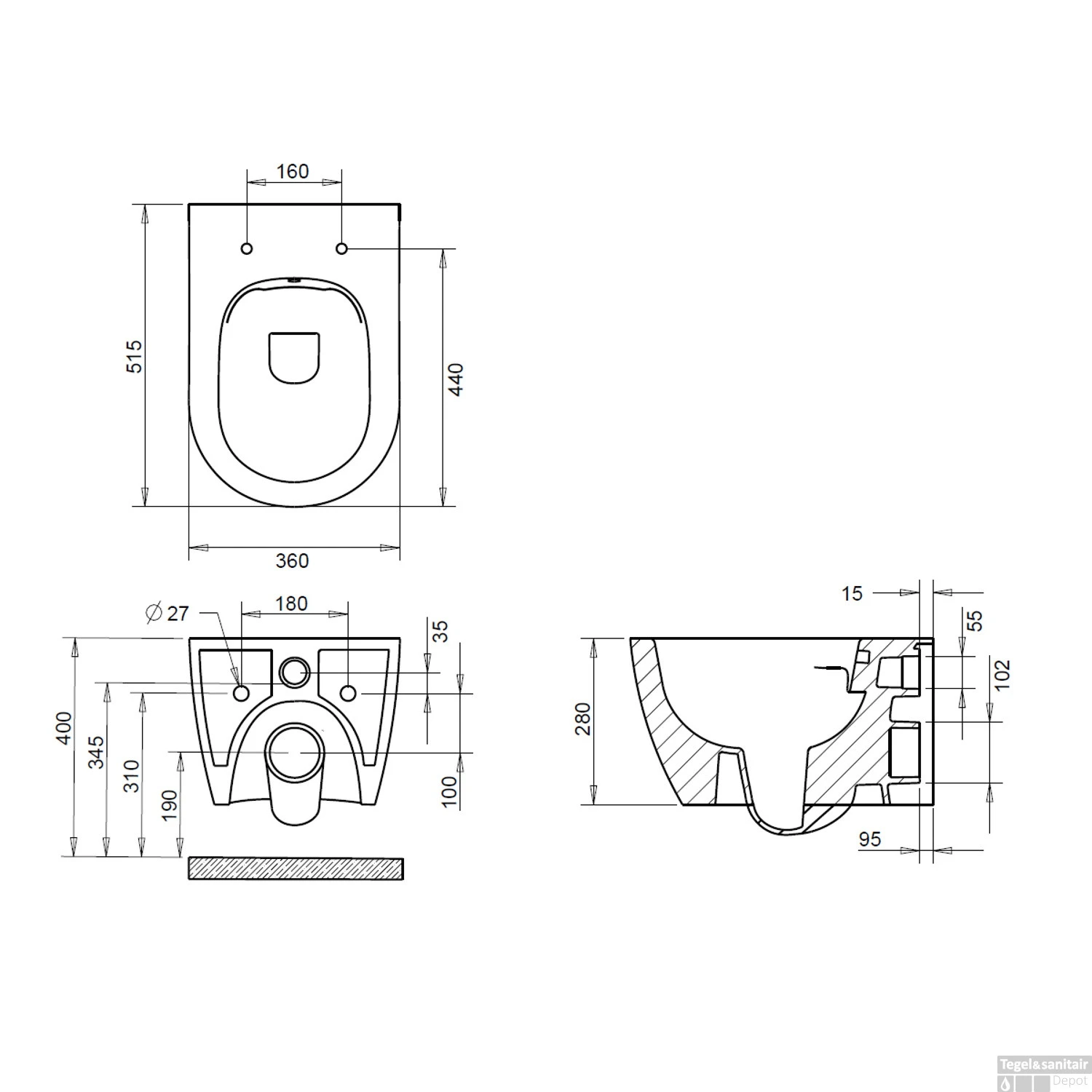 Belangrijk: Het wandcloset wordt zonder toiletzitting meegeleverd. Onderaan de pagina kunt ervoor kiezen tegen een meerprijs een toiletzitting bij te bestellen.