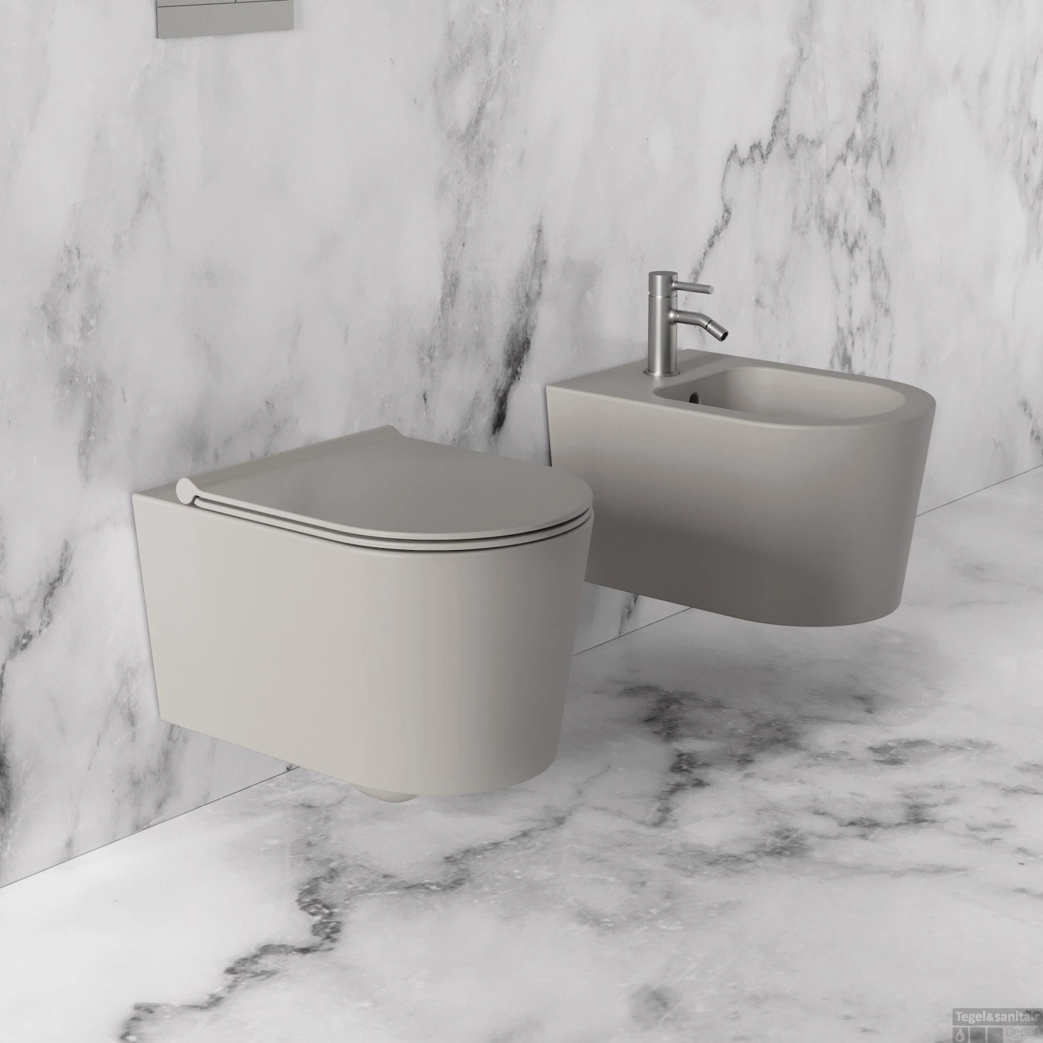 Wandcloset Civita 50x35x36.5cm Keramiek Rimless Mat Grijs (Excl. zitting)